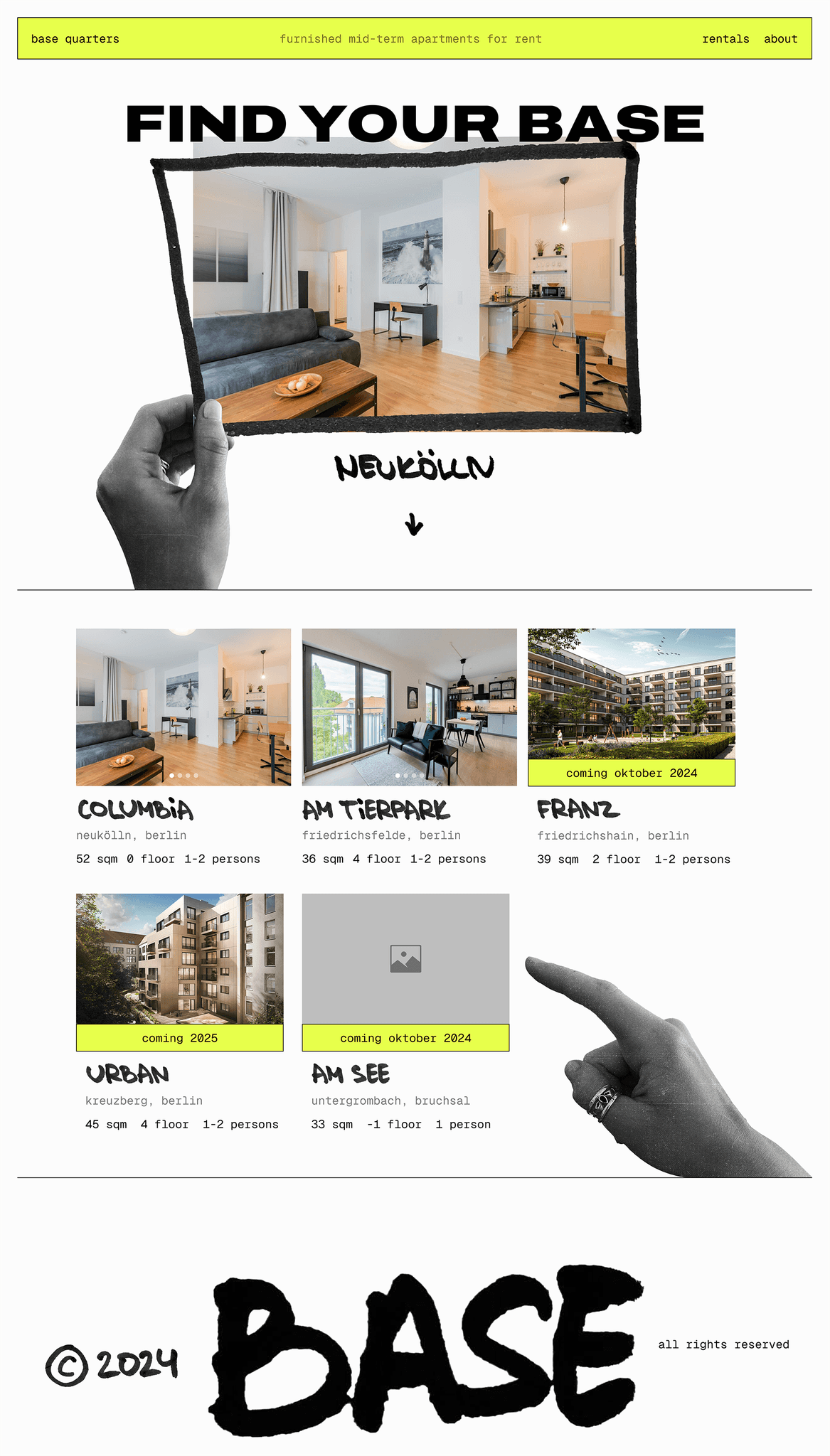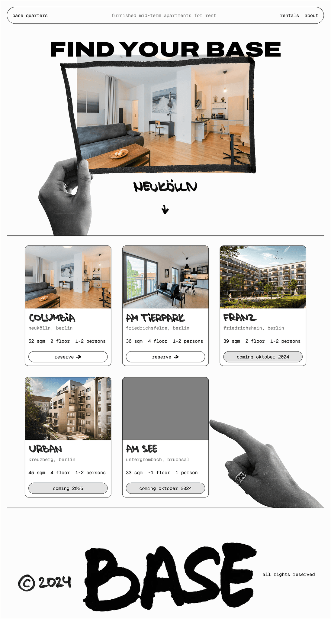 Established platforms like Wunderflats, Homelike, and Habyt offer reliability, flexibility, and an extensive listings choice, but honestly, they feel pretty bland and corporate. I saw this as our chance to shine: by bringing a fresh, and alternative vibe into Base’s design, we could tell a more personal, engaging story and connect with people looking for a home.