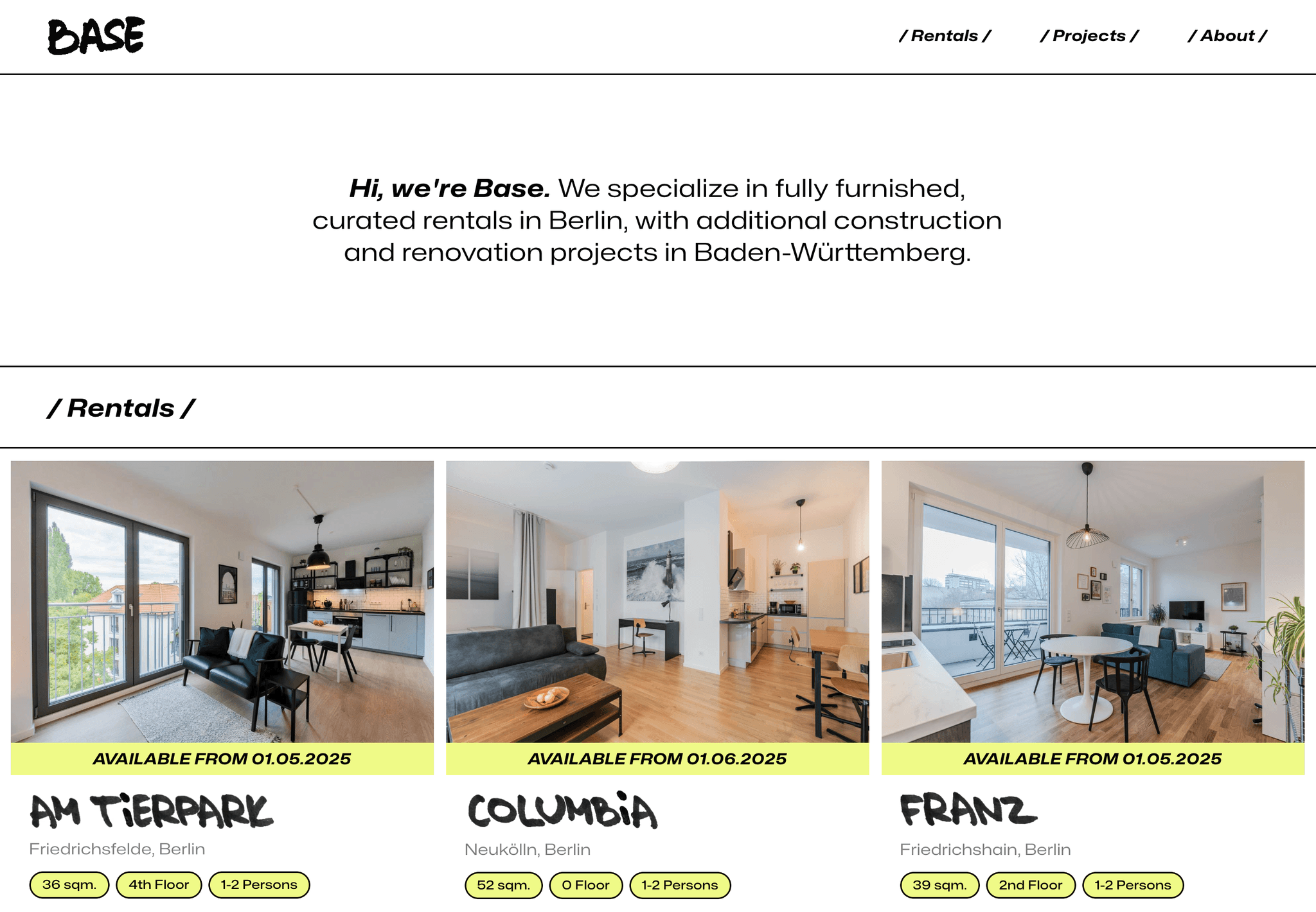 Base is our family-run, growing real estate portfolio. We focus on beautifully furnished mid-term rental apartments for expats in Berlin, along with renovation and construction projects in Baden-Württemberg.