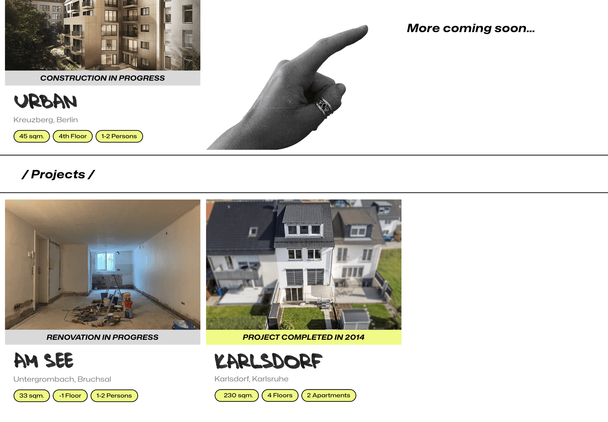 Our users are often partners, potential investors, or curious peers in real estate. I designed with the assumption that they want to quickly understand who we are, what we offer, and where we’re headed, without digging through a dense site. This led to a content-light, visual-first approach.
